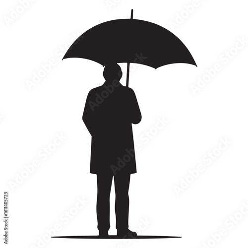 Silhouette of a person standing with an umbrella on a white background