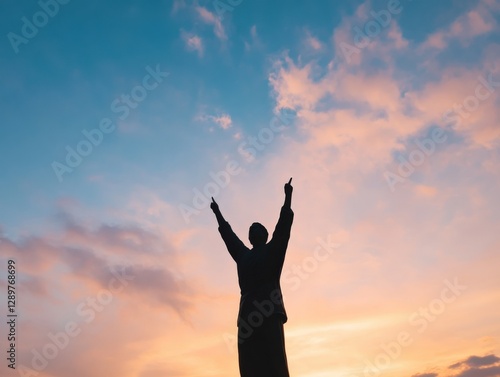 Silhouette of a person under a colorful sunset sky.