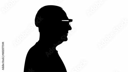 Silhouette of a person with glasses in profile against a white background creating a stark contrast look
