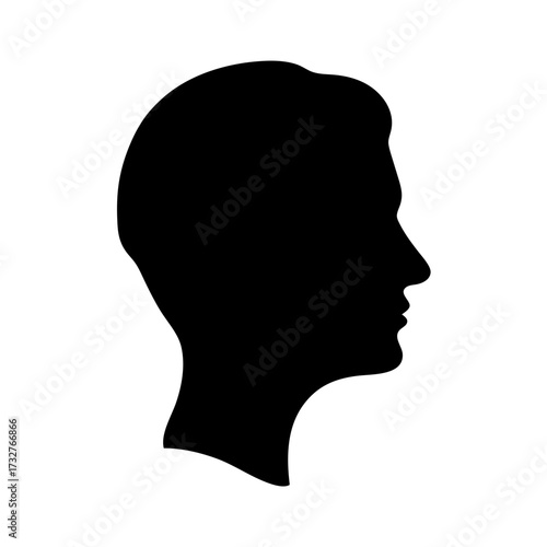Silhouette of a person's head and face in profile, black and white