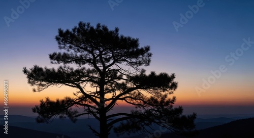 Silhouette of a Pine Tree at Sunset with Vibrant Sky Colors
