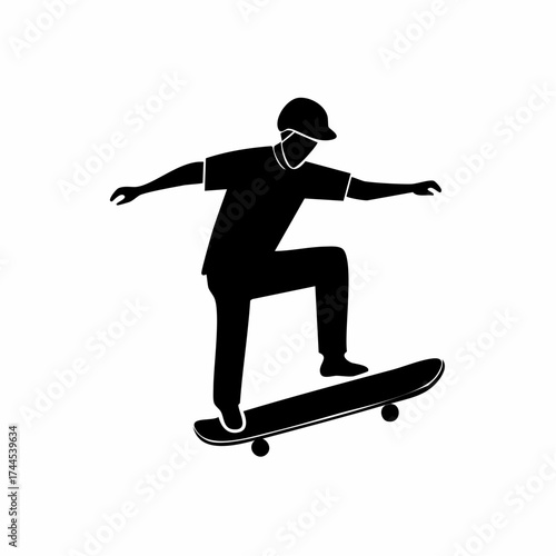 Silhouette of a Skateboarder Performing a Trick, Isolated on a White Background