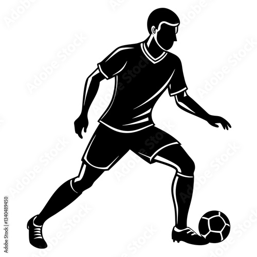 Silhouette of a soccer player skillfully dribbling a ball, symbolizing agility and control