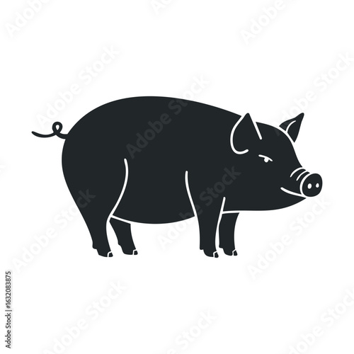 Silhouette of a standing pig on a white background