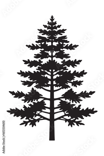 Silhouette of a tall evergreen pine tree with layered branches