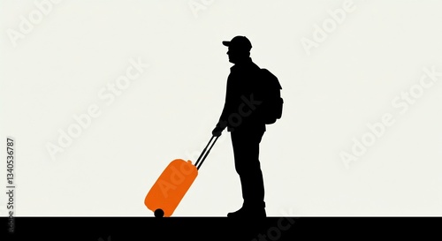 Silhouette of a Traveler with Orange Luggage in Minimalist Style: Discover the Art of Travel with Unique Illustrations.