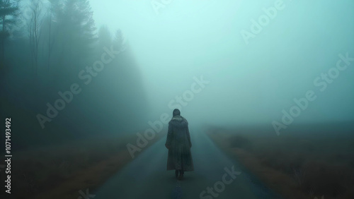 Silhouette of a woman in a fog