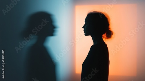Silhouette of a Woman in Front of a Mirror Reflection