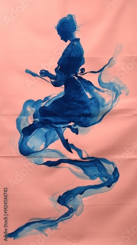 Silhouette of a woman in motion, painted with flowing ink.