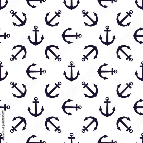 Silhouette of anchors seamless pattern. Vector black doodle sketch illustration on white background.