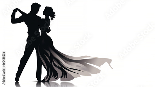 Silhouette of ballroom dancers who are dancing as a couple showing their technique skills at a Latin dance competition event, Generative AI stock illustration image isolated on a white background