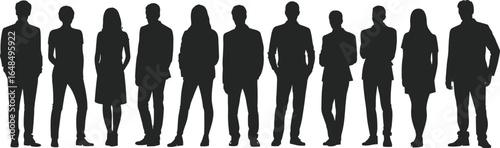 Silhouette of business people in standing poses, corporate team vector illustration, professional group outline for office, teamwork, career, and leadership conce