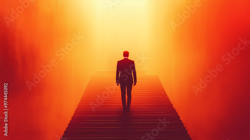 Silhouette of businessman climbing steps toward success on stairs, simple career growth background wallpaper