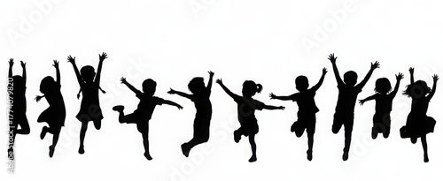 Silhouette of children jumping and celebrating a vector illustration perfect for school projects and joyful themes