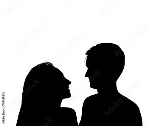 Silhouette of Couple Man and Woman kissing. couple in Love. lovers staying. isolated on white background. Romantic pair. relationship, Friendship concept. face to face. man and woman. illustration.