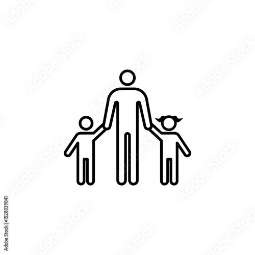 Silhouette of father, son and daughter with colored lines. Father and son illustration icon. Stick figure, pictogram