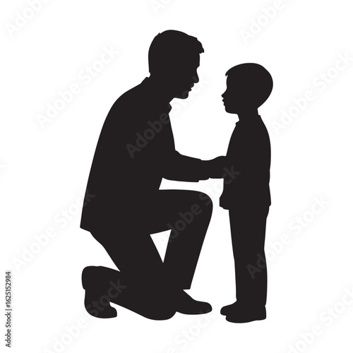 "Silhouette of Father Talking to Child Vector Illustration"