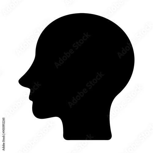 silhouette of human head in profile view, simple black vector illustration for design and branding, isolated abstract composition