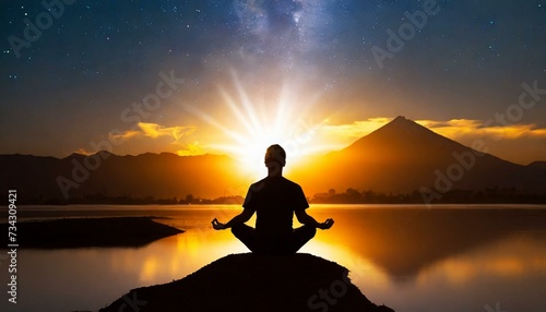 Silhouette of human sitting. Meditation in yoga. Psychology and relax