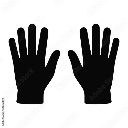 Silhouette of left and right gloves facing upwards on white background