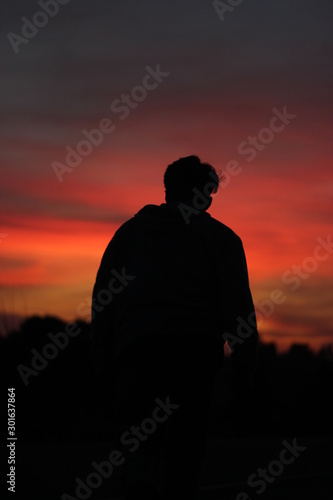 silhouette of man at sunset