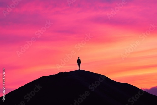 Silhouette of man on hill at sunset