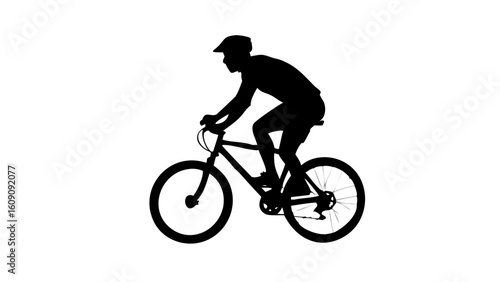 Silhouette of Mountain Biker Riding Bicycle Vector Illustration