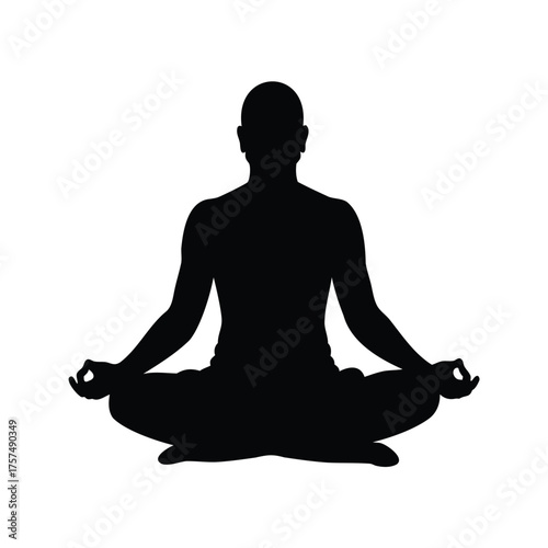 Silhouette of person meditating in lotus position, promoting wellness and mindfulness, person meditating silhouette vector illustration