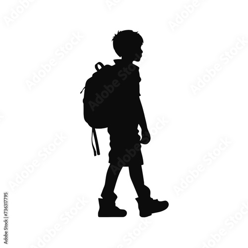 silhouette of school kids walking wearing backpack, back to school concept