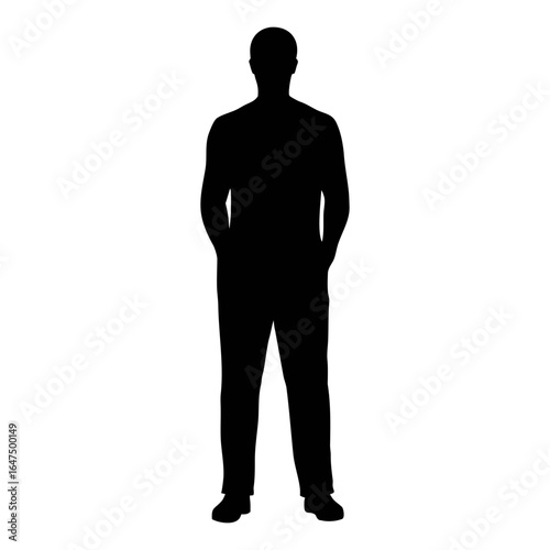 Silhouette of standing man full body vector illustration black and white cutout image art