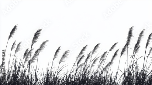 Silhouette of Tall Grasses Against a Bright Sky Creating a Minimalist Natural Scene with a Serene and Peaceful Mood