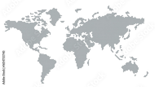 Silhouette of the Global map formed by uniform metallic units, isolated on transparent background. 3D illustration