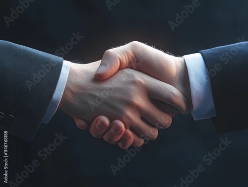 Silhouette of two men shaking hands in dimly lit room, forming alliance in shadows.