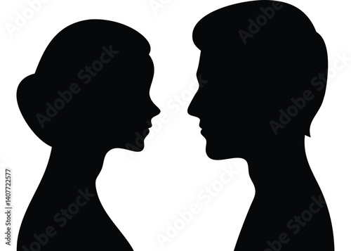 Silhouette of two people man and woman facing each other