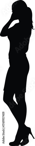 Silhouette of Woman in Profile with Hand on Head in Thoughtful Pose
