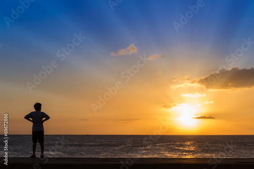 Silhouette of women standing at the beach with sunset background