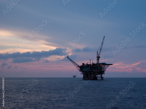 silhouette offshore platform with crane stand by on the morning, sunrise background