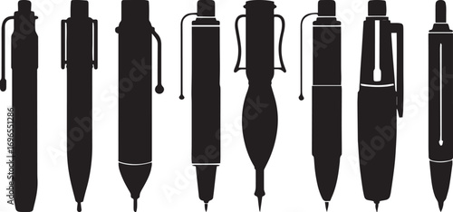 Silhouette Pen Vector Set – Stationery, Art, and Office Icons