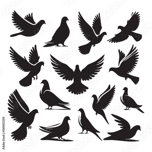 Silhouette set of dove