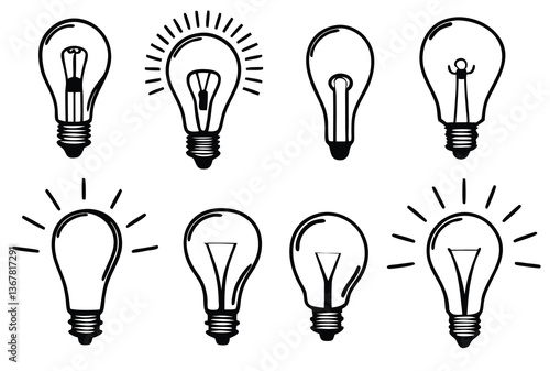 silhouette Set of light bulbs on a white background. Hand drawn vector illustration.