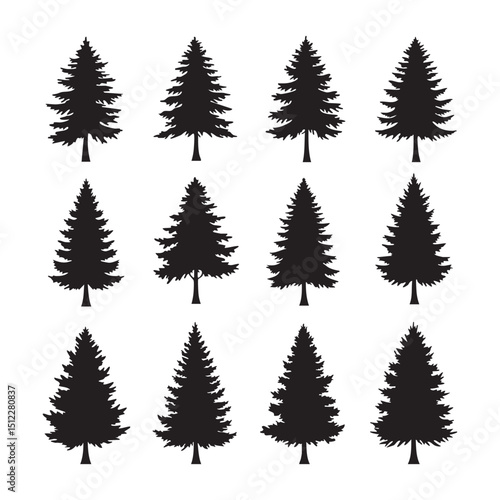 Silhouette set of pine tree on white background