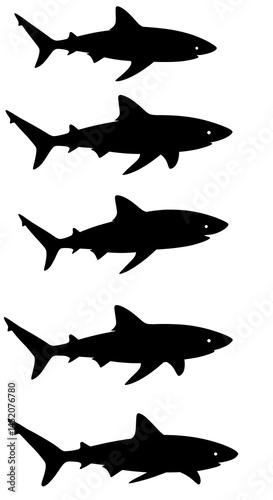 Silhouette Sharks: Elegant Black Aquatic Life Forms AI Generated