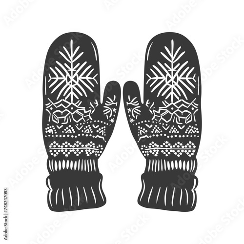 Silhouette snow knit mittens black color only full