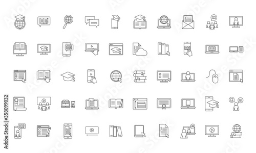 silhouette style icon set design, Education online and elearning theme Vector illustration