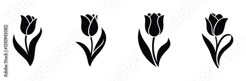 Silhouette Tulip Flower Icon - Minimalist Floral Vector Illustration