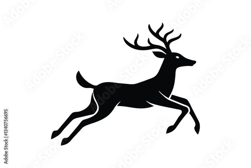 Silhouette vector art illustration of a leaping deer in mid-air.eps