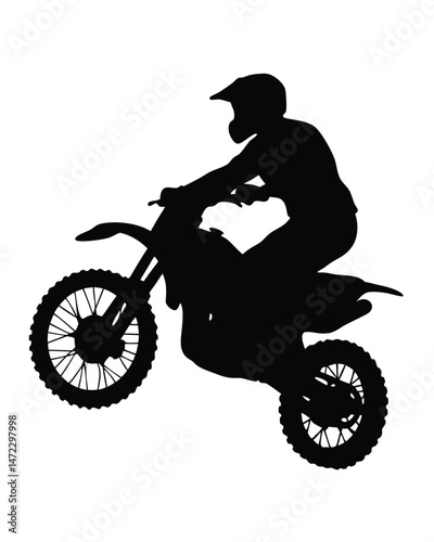 Silhouette vector of a person riding a dirt bike with helmet and protective gear on a white background