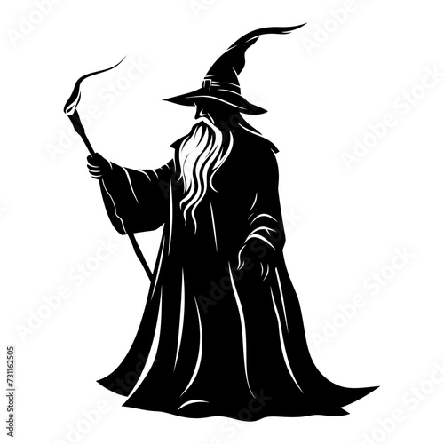 Silhouette wizard with wand black color only full