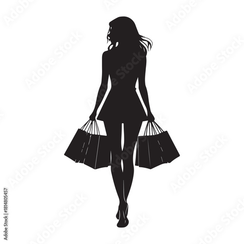 Silhouette woman with shopping bags isolated with white background