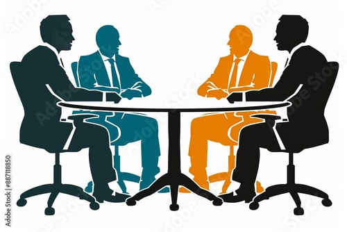 Silhouetted business professionals in a discussion, symbolizing leadership and corporate strategy.
